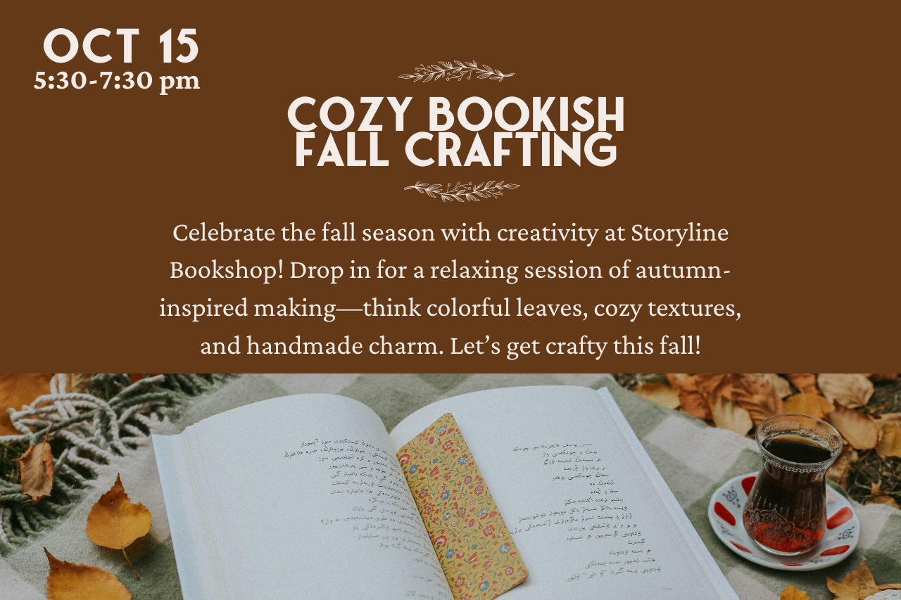 Celebrate the fall season with creativity at Storyline Bookshop! Drop in for a relaxing session of autumn-inspired making—think colorful leaves, cozy textures, and handmade charm. Let’s get crafty this fall!
