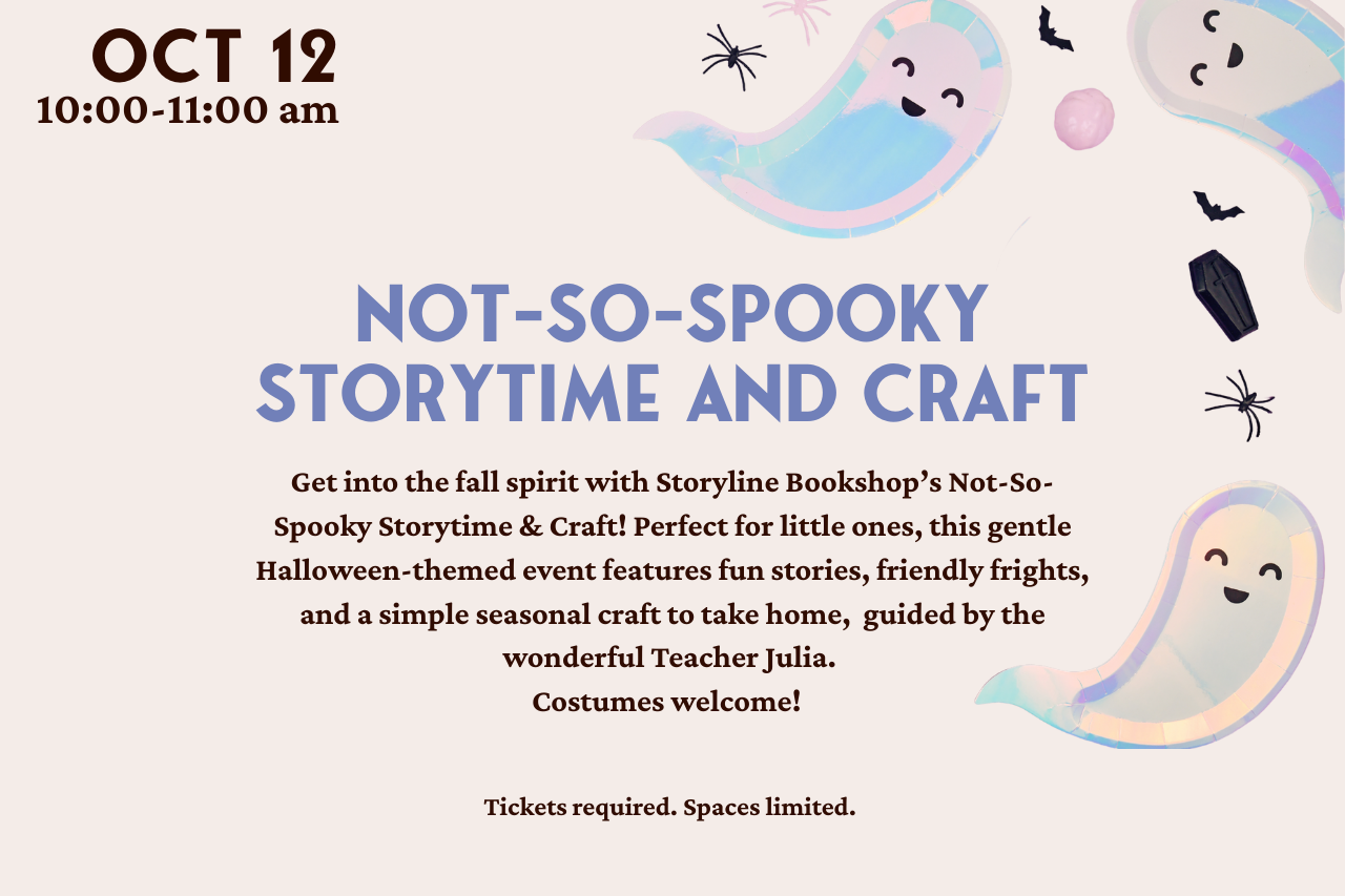 Get into the fall spirit with Storyline Bookshop’s Not-So-Spooky Storytime & Craft! Perfect for little ones, this gentle Halloween-themed event features fun stories, friendly frights, and a simple seasonal craft to take home, guided by the wonderful Teacher Julia.