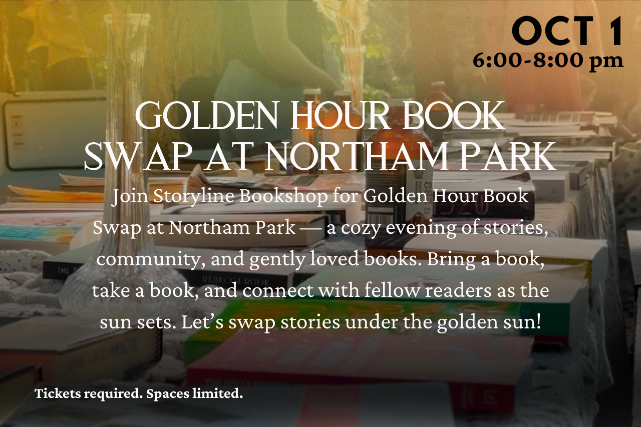 Join Storyline Bookshop for Golden Hour Book Swap at Northam Park — a cozy evening of stories, community, and gently loved books. Bring a book, take a book, and connect with fellow readers as the sun sets. Let’s swap stories under the golden sun!